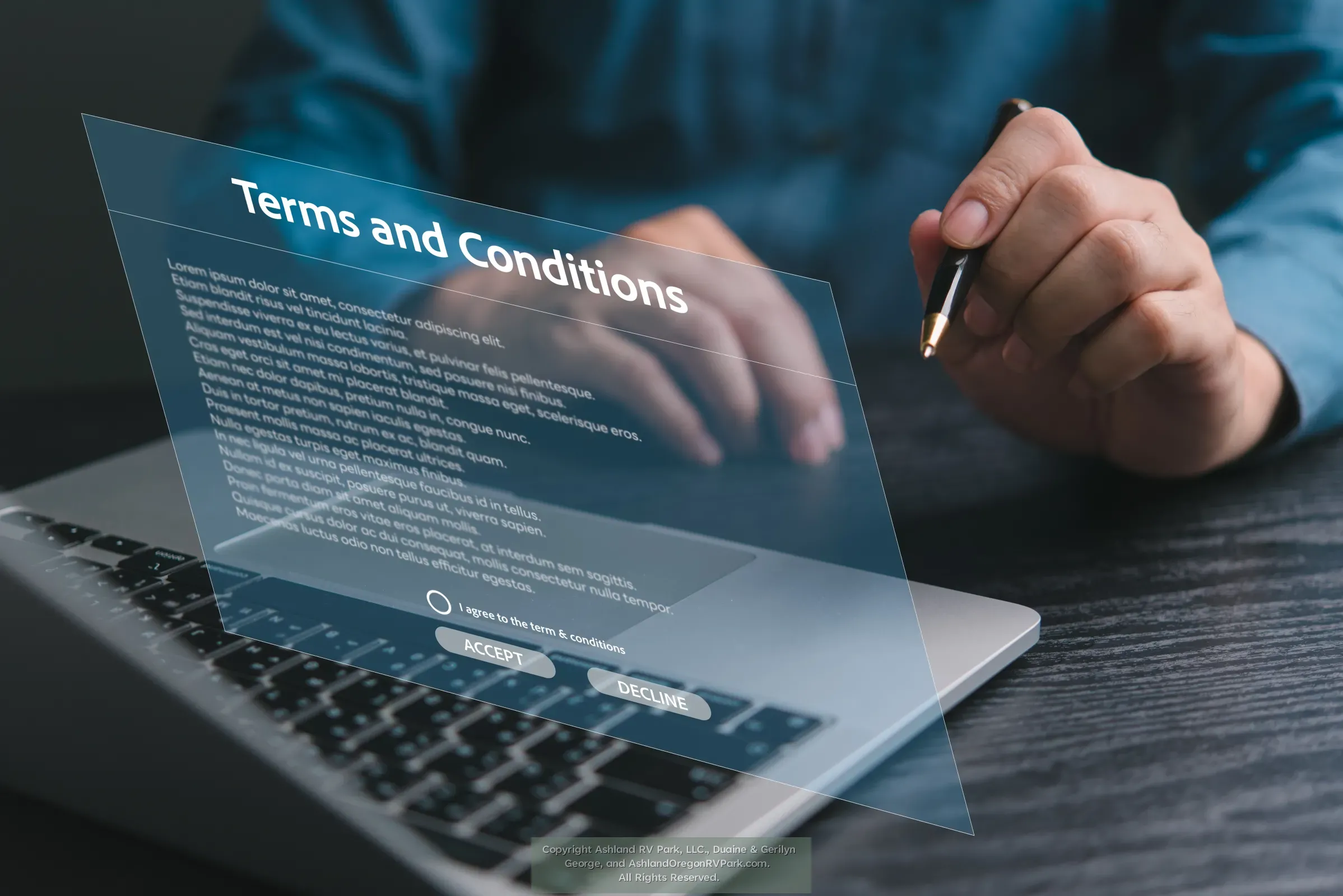 Welcome to AshlandOregonRVPark.com (A website and business which operates under the legal entity Ashland RV Park, LLC.).These Terms and Conditions ("Terms") govern your access to and use of our website (herein "Site") and services. By using our Site, you agree to comply with these Terms.